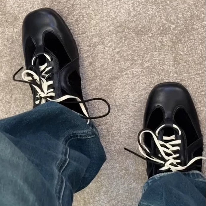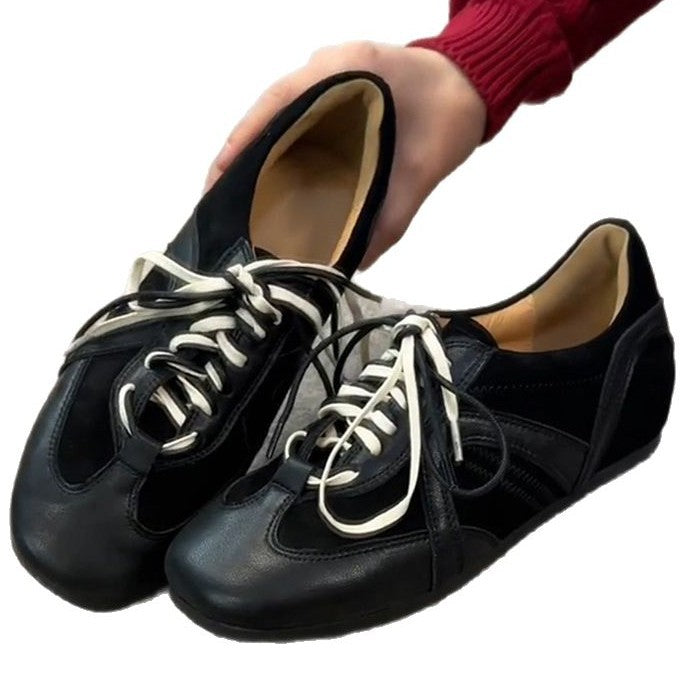 皮の皮版~復古の黒い靴は帯を結びます阿甘靴女内増高レジャーの板靴靴百は運働靴の潮に合わせる
