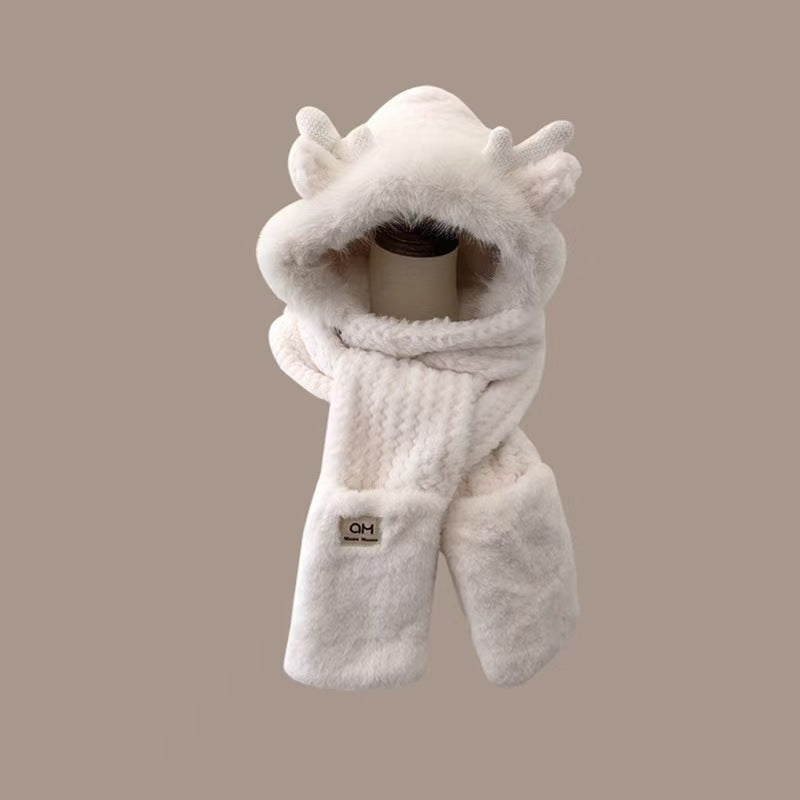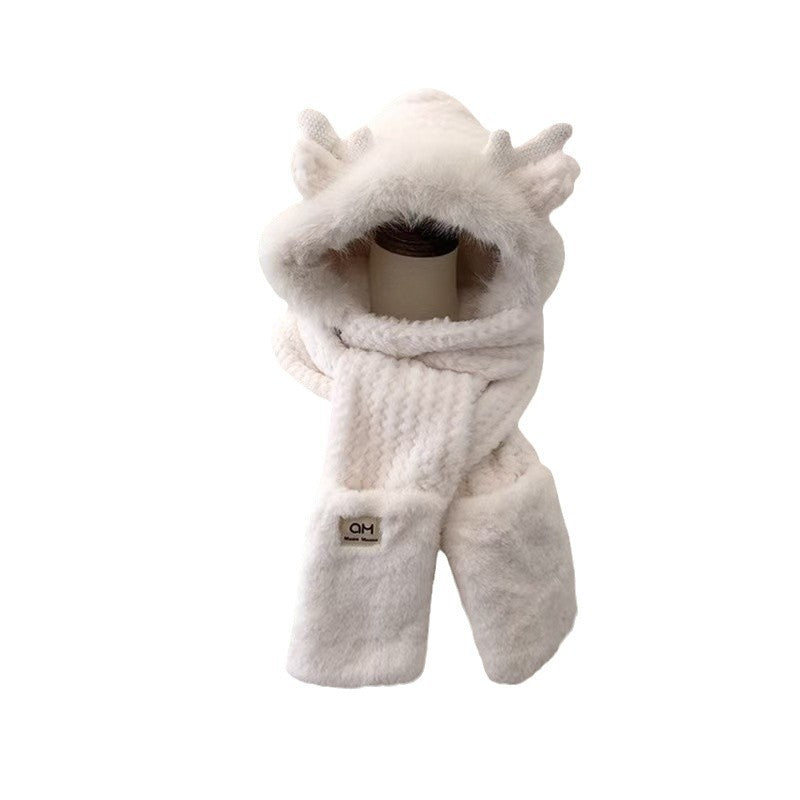 鹿の角の3点セットの秋冬の帽子女性の手袋のマフラーの一体はかわいくてあたたかくて厚い毛の絨帽を加えます